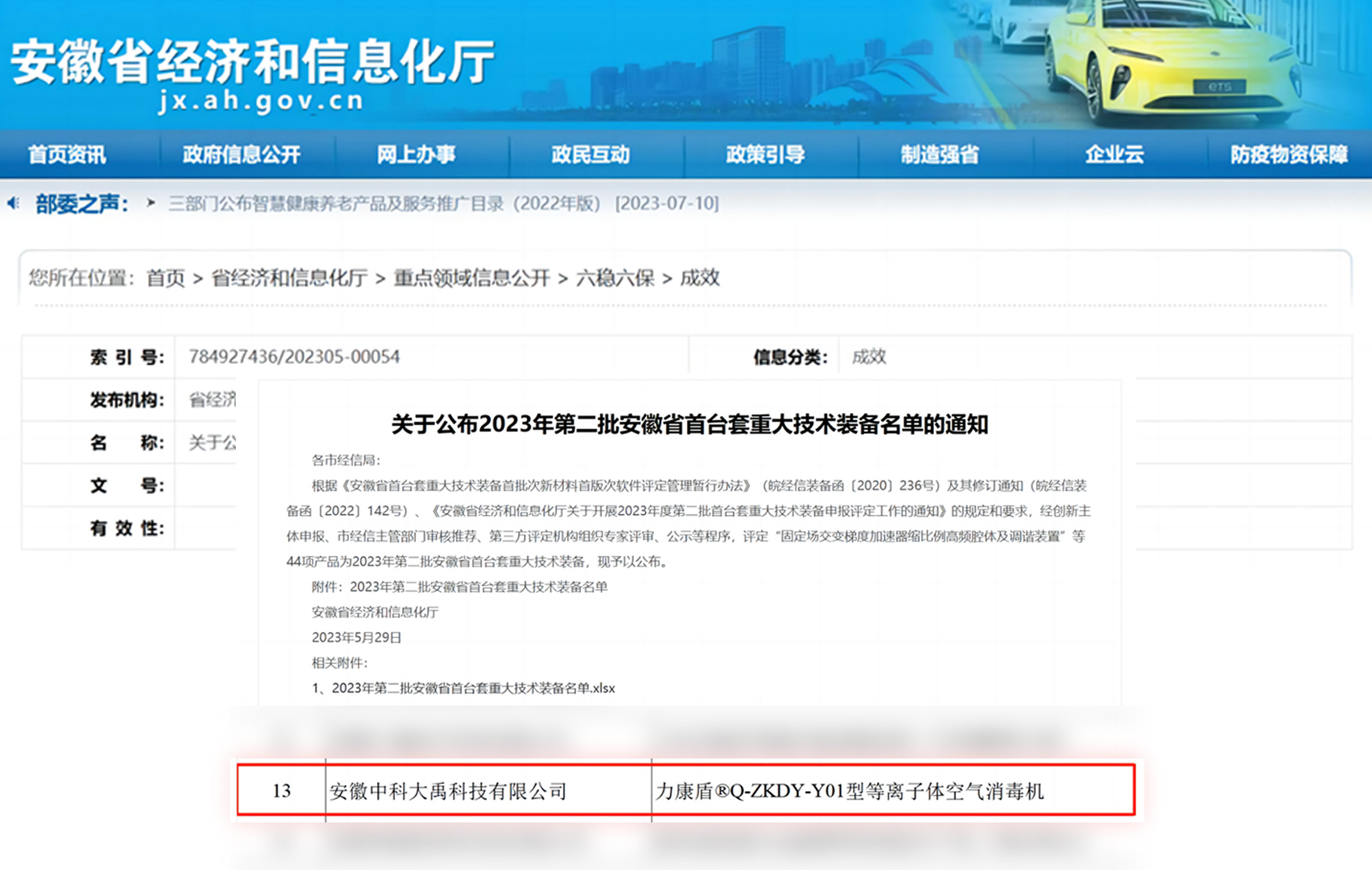• 力康盾?ZKDY-G-180-P型等離子體空氣消毒機入選2024年度第三批安徽省首臺套重大技術(shù)裝備,評定等級:國內(nèi)先進