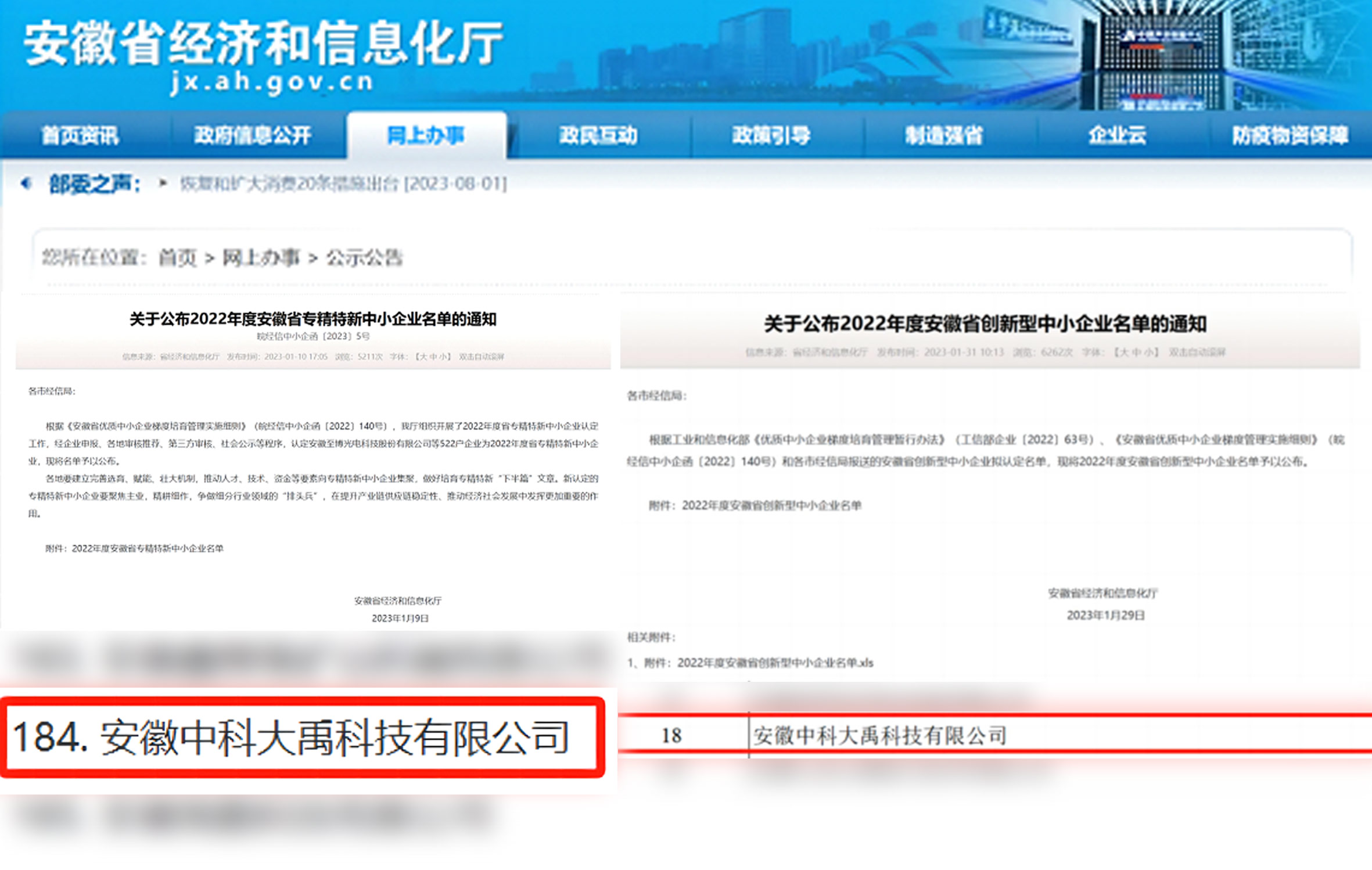 • 入選2022年度安徽省專精特新中小企業(yè) 入選2022年度安徽省創(chuàng)新型中小企業(yè)名單