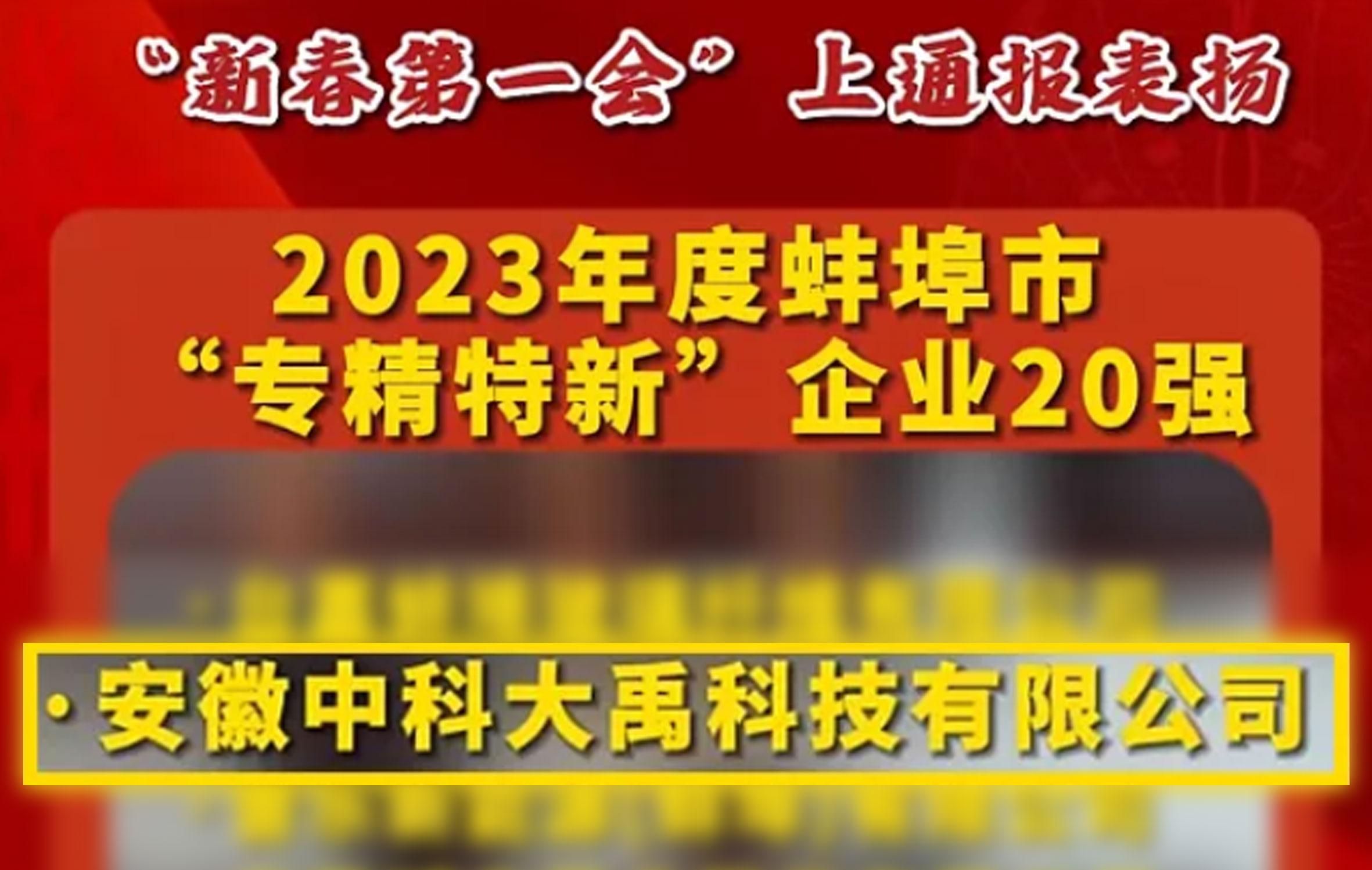 • 中科大禹榮登2023年度蚌埠市“專精特新”企業(yè)20強